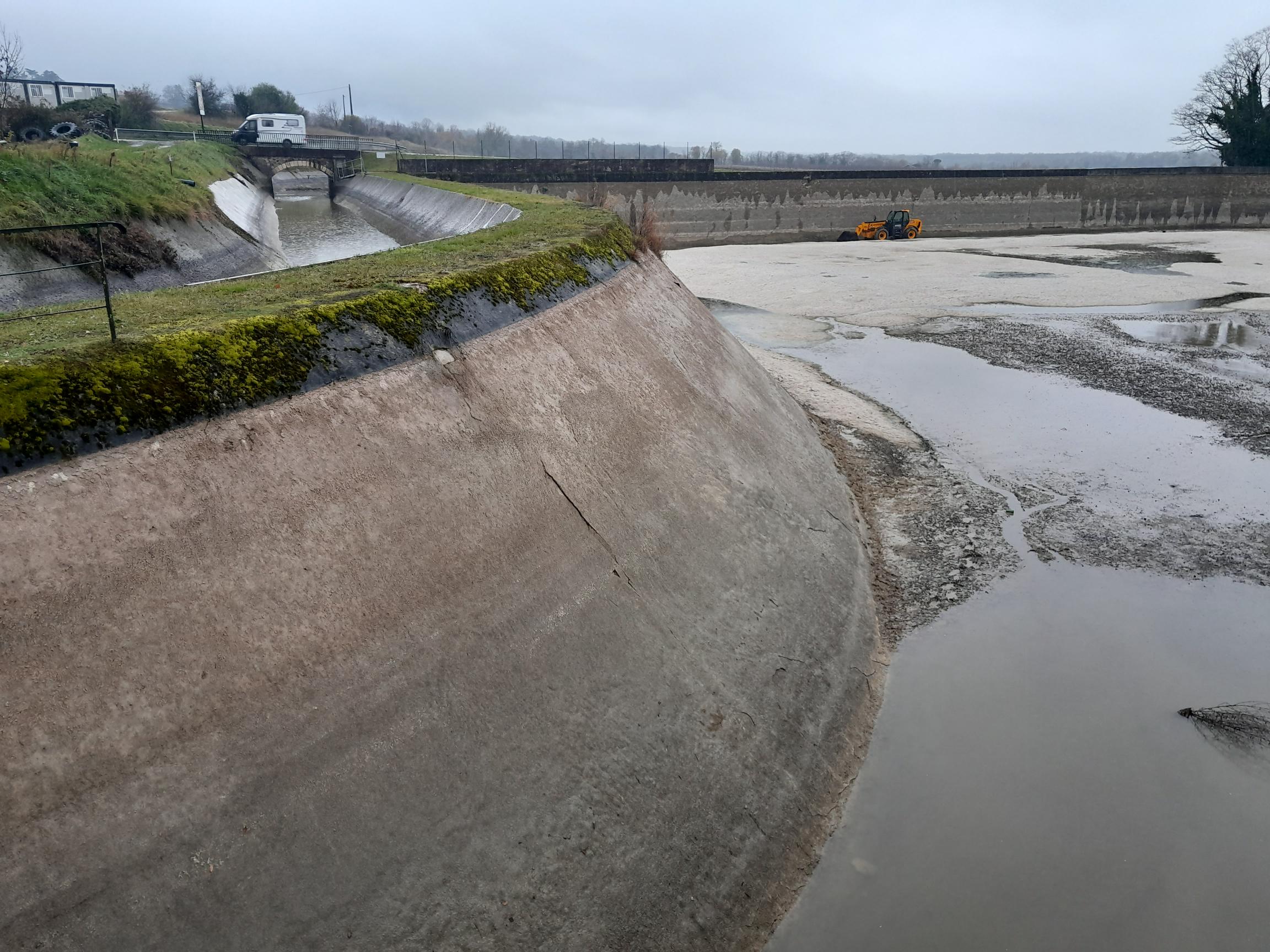 Le SID a réalisé,  lors de la coupure du canal en 2025, des travaux de réfection complète de l’étanchéité du bassin de l’Ecancière sur la commune d’Eymeux. Les travaux ont consisté en la reprise du béton sur les murs et le radier.