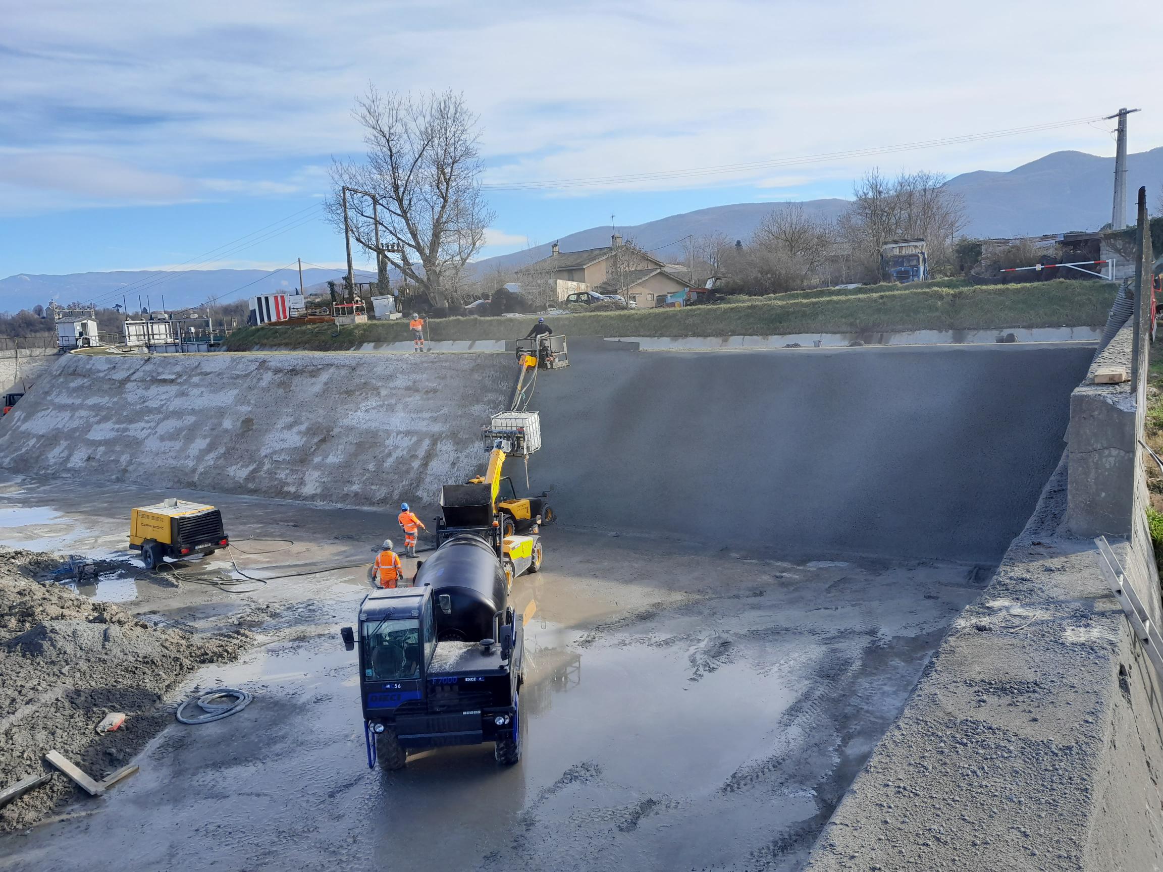 Mise en oeuvre du béton projeté fibré, dosé 400kg/m3