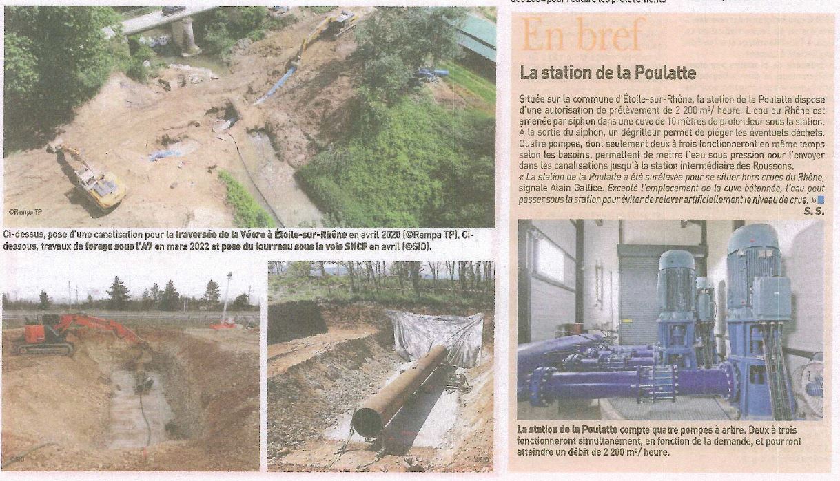 - station de pompage de production appelée « Station de la Poulatte » implantée sur la commune d’Etoile-sur-Rhône, d’une capacité de 2 200 m3/h,